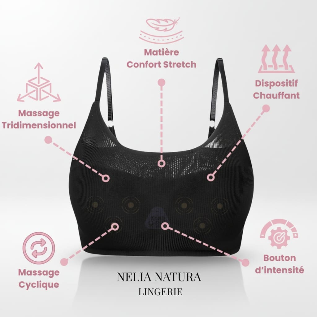La brassière massante Nélia Natura enveloppe votre poitrine, stimule en profondeur et apporte un maintien naturel qui aide votre poitrine à retrouver une sensation de galbe et de tenue jour après jour.